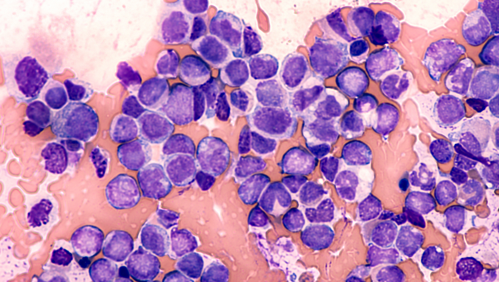 Esta imagem microscópica de medula óssea ou sangue periférico mostra uma proliferação descontrolada de células mieloides imaturas (blastos), com núcleos grandes e citoplasma escasso. Embora seja um câncer e não uma doença primariamente autoimune, a LMA envolve uma falha no desenvolvimento e diferenciação das células imunes (mieloides) na medula óssea. O sistema imune, nesse contexto, pode estar comprometido devido à supressão da hematopoiese normal e à presença de células malignas que evadem a vigilância imunológica.