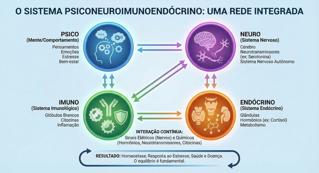 Ao expandirmos o olhar para a saúde coletiva e a gestão, compreendemos que as condições sociais e ambientais são determinantes biológicos. A poluição, a falta de saneamento e a desigualdade atuam como estressores crônicos que mantêm o sistema imune em alerta constante, gerando uma inflamação de baixo grau que predispõe populações inteiras a doenças crônicas e infecciosas, o conceito de sindemia. A abordagem de Saúde Única nos lembra que a saúde humana é interdependente da saúde animal e ambiental.