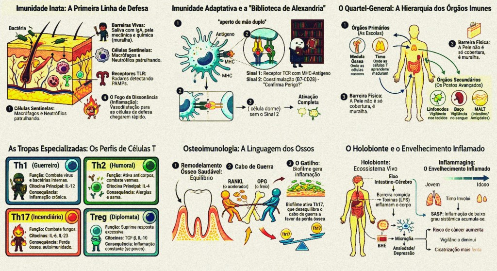 Olá, sou o Claudio. Gostaria de convidar você a pensar sobre a imunologia de uma maneira que vai além das fronteiras disciplinares tradicionais, integrando medicina, enfermagem, biomedicina, odontologia, fisioterapia, nutrição e saúde coletiva em uma narrativa única sobre a vida.